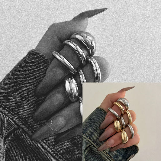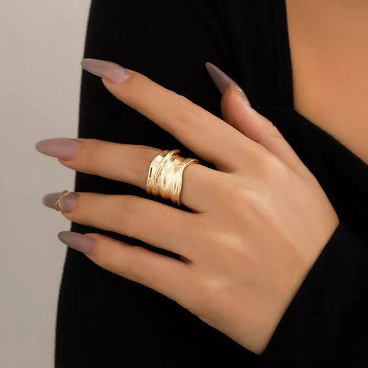 Gold Geometric Ring Set – 3-Piece Gothic Metal Rings