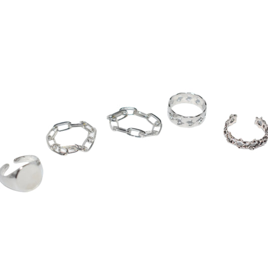 Silver Goth 5 Ring Set | Unisex | Adjustable
